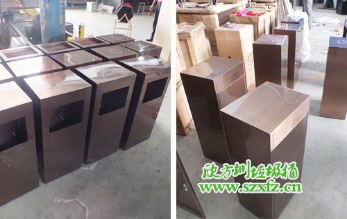 作為一家酒店,采購不銹鋼垃圾桶要求極高。垃圾桶的選擇不容馬虎,兩者搭配得融入酒店的文化氣息。我們欣方圳公司業務部人員,根據酒店的特色給他推薦了一款C60方形不銹鋼果皮箱。洽談中對方對我們此款垃圾桶很是滿意,只不過顏色需要改善。我們設計師在對方的提議中,為他把顏色改為了土豪金色,高端大氣,上層次。本款采購的不銹鋼果皮箱規格為:350*350*680mm,方形設計,采用304#優質砂光不銹鋼材料模壓成型,金屬亮澤,高雅美觀跟酒店搭配在一起,可謂是天作地和一對。
