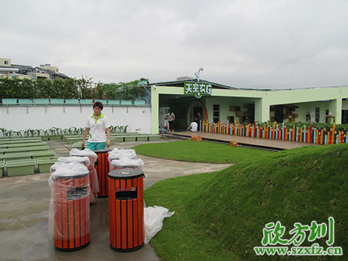 深圳天空農(nóng)莊是中國首家以有機農(nóng)業(yè)為主題的兒童體驗樂園,以“給孩子一個綠色的童年”為核心,以有機農(nóng)業(yè)為依托,以體驗式教育理論為基礎(chǔ),專為3-15歲兒童打造的多功能主題樂園!天空農(nóng)莊采購部為利于環(huán)保,提升環(huán)境形象,創(chuàng)建和諧的自然環(huán)境,特意聯(lián)系我司欣方圳訂購了一批鋼木垃圾桶。