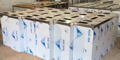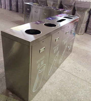 欣方圳不銹鋼五分類環保回收箱批量生產圖