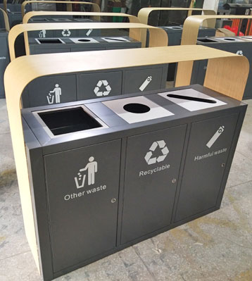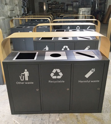 欣方圳三分類仿木紋鋼制烤漆垃圾桶批量生產(chǎn)圖