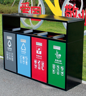 戶外4分類垃圾桶批量生產圖