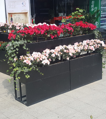欣方圳戶外雙層組合金屬烤漆花箱批量生產圖